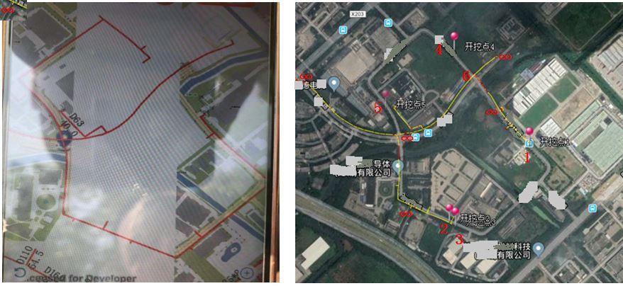 以上這兩個(gè)工程案例,都是勘察單位在現(xiàn)場(chǎng)需要打樁、打鉆等施工活動(dòng),存在與現(xiàn)場(chǎng)燃?xì)夤艿澜徊娴那闆r,必須要保證與燃?xì)夤艿烙凶銐虻陌踩嚯x,一般采用挖機(jī)開挖見管的方式確定,但是如果不知道管道的準(zhǔn)確位置,造成現(xiàn)場(chǎng)大量的開挖面積也無(wú)法找到管道或者是停工的損失,例如第二個(gè)案例。