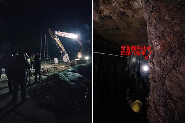 我們探測(cè)人員從早上一直在現(xiàn)場(chǎng)探測(cè),直到晚上九點(diǎn),人工開挖出來(lái)見到黃顏色線條的管道,才放心撤離。